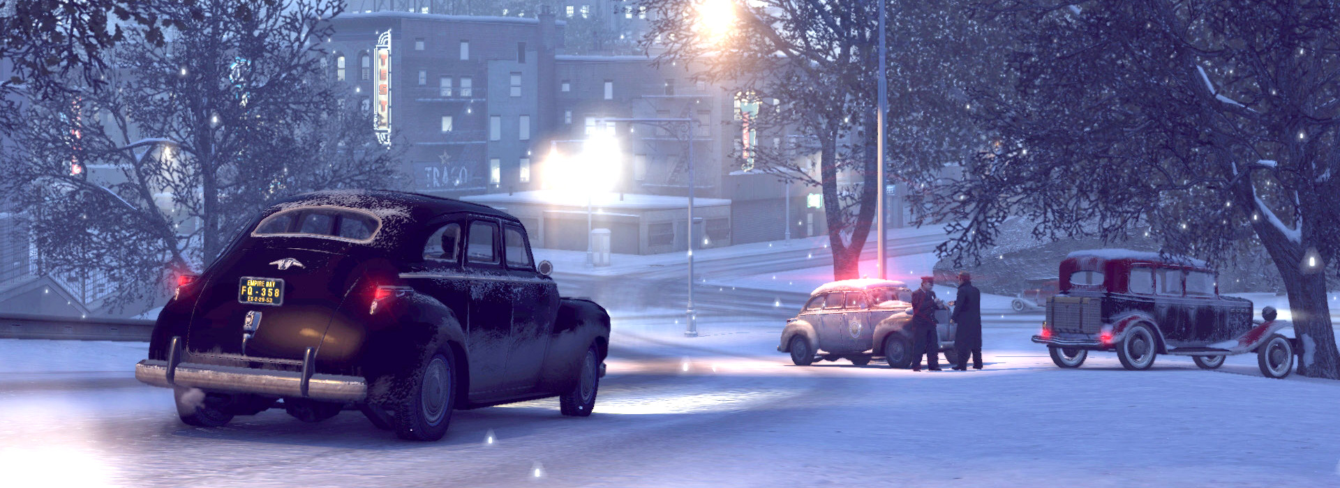 Moi qui suis pourtant un vrai prêcheur de la liberté d'action et de décision, des mondes ouvert, des GTA-like et des RPG occidentaux, j'ai été parfaitement satisfait par Empire Bay, ce magnifique croisement entre Chicago et New-York City. Car oui le jeu est beau. Sur console, on a malheureusement droit à un aliasing assez foireux. Alors soit il est plus violent sur PS3 (console sur laquelle j'avais fait la démo) soit le fait que mon écran soit un chouillat plus petit que celui du salon a fait passer la pillule bien plus facilement. Quoi qu'il en soit, le jeu est très très beau. Bourré de détails et de finissions superbes, on peut mettre dans le même sac la ville bien sûr et les personnages. Ceci permet une immersion fantastique, appuyée par la bande-sonore. On rentre du front dans une ville enneigée, au son de Let It Snow de l'inoubliable Frank Sinatra, et le quartier dégage une vraie impression de vie.
