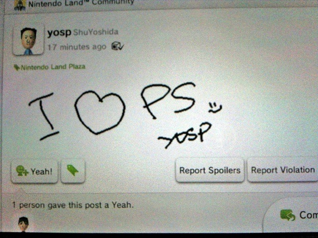 Mais ce n'est pas tout, car le bigboss de Sony est aller jusqu'à "troller" sur le Miiverse en lançant un beau "I love PS" (j'aime PlayStation). Franchement amusant et de bonne guerre, on attend maintenant une réponse d'un des boss de Nintendo !