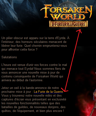 Autre pub reçue récemment : celle de Forsaken World, où les traducteurs nous prouvent qu'ils ne savent pas encore tenir un glossaire cohérent.