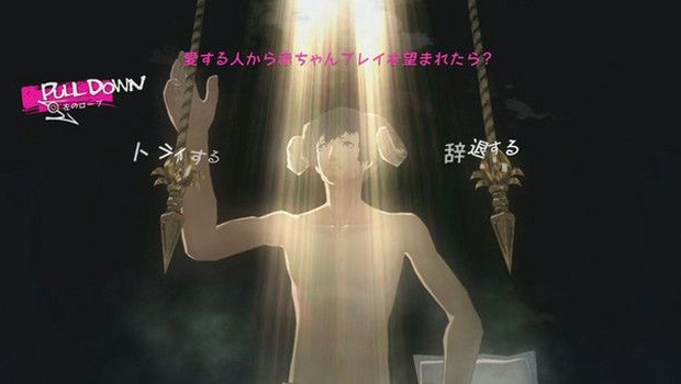 Ca fait quelques temps que Catherine ne donne plus de nouvelles hein? Rassurez vous, car aujourd'hui elle revient en force!!! Mais commencons par Vincent, et ses cauchemars. De nouvelles infos sur la partie "cauchemar" du jeu ont été dévoilées. Si vous ne voulez rien savoir, zappez ce paragraphe et rendez vous un peu plus loin pour les images et un message de Catherine. Quand Vincent arrivera en haut d'un niveau, il rencontrera des moutons avec qui il pourra parler et échanger des informations. Il pourra aussi acheter de nouveaux objets. Après ca, il devra suivre le tapis rouge jusqu'à... une pièce où il devra se confesser! On devra apparemment répondre à plusieurs questions, posées par une voix mystérieuse (peut être la fameuse sorcière qui punit les hommes infidèles?). A la suite de quoi il sera envoyé dans le prochain niveau.