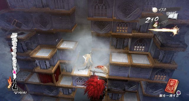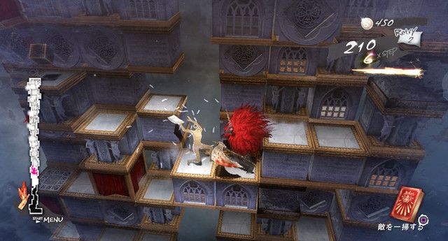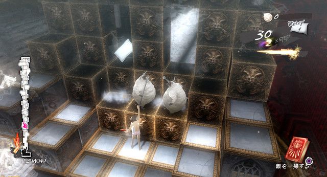 Parlons maintenant des moutons. Les moutons représentent apparemment des gens que Vincent connait ou peut rencontrer dans la vraie vie. L'exemple donné ici est qu'il rencontre Todd sous sa forme de mouton, qu'il avait déjà croisé au Bar. Quelques jours plus tard, Todd est apparemment mort. Famitsu semble sous entendre que l'on pourra influencer la réalité par nos actions dans le monde des cauchemars. Je pense qu'il s'agira en fait des quêtes optionnelles du jeu, qui permettront de sauver des gens peut être. Mais ce n'est pas tout, les moutons bloqueront aussi parfois le chemin de Vincent, dans leur propre intérêt, pour survivre. Vincent devra alors s'en débarasser en utilisant des objets (sur les images, on le voit en griller deux avec des éclairs par exemple). Et maintenant, place aux images! Je les ai mis dans le même ordre que les informations que je vous ai donné, plus des images de gameplay en bas. Vous remarquerez qu'en plus des monstres géants, il y aura aussi des ennemis de notre taille que l'on pourra pousser dans le vide à coup d'oreiller!