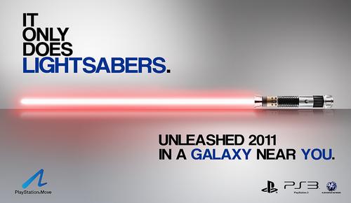 Est ce que le PS Move se transformera en sabre laser? C'est une question que tout le monde a du se poser après l'annonce de cette manette. Peut être que nous avons un début de réponse aujourd'hui. L'image ci dessus, trouvée sur les forums officiels de la communauté Playstation US laisserait présager d'un jeu Star Wars compatible PS Move. Cela pourrait tout aussi bien être un fake bien réalisé. Certains parlent aussi d'une compatibilité pour The Force Unleashed 2, puisque comme vous pouvez le voir, il y a le mot Unleashed sur cette affiche publicitaire. On est donc un peu dans le flou. Mais on aura surement un démenti dans la semaine qui vient si cette image est fausse.