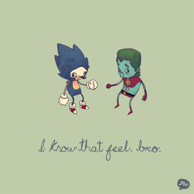 Voici une série d'illustration intitulé I know that i feel, bro de ChrisG mettant en scène deux personnages issus de comics, dessins animés ou de jeux vidéo ayant une affinité commune. A vous de la retrouver.