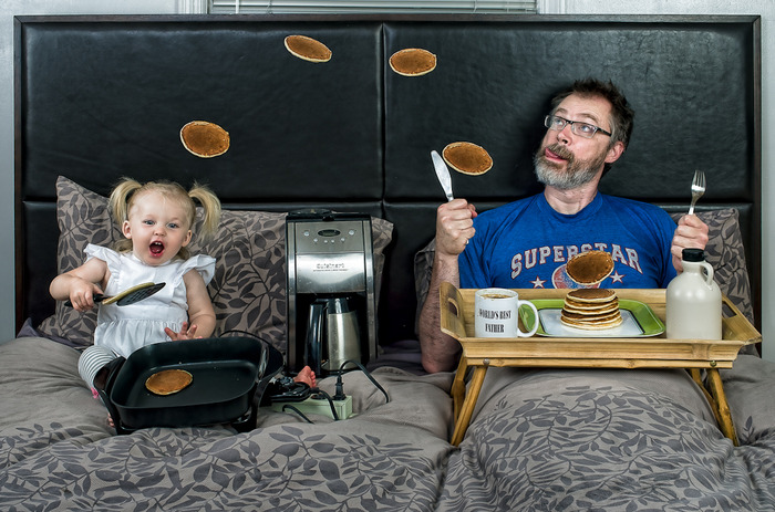 Son idée : faire des photos amusantes avec sa fille pour qu'elle ait des souvenirs rigolos quand elle sera plus grande.