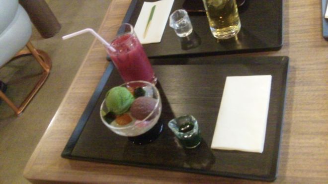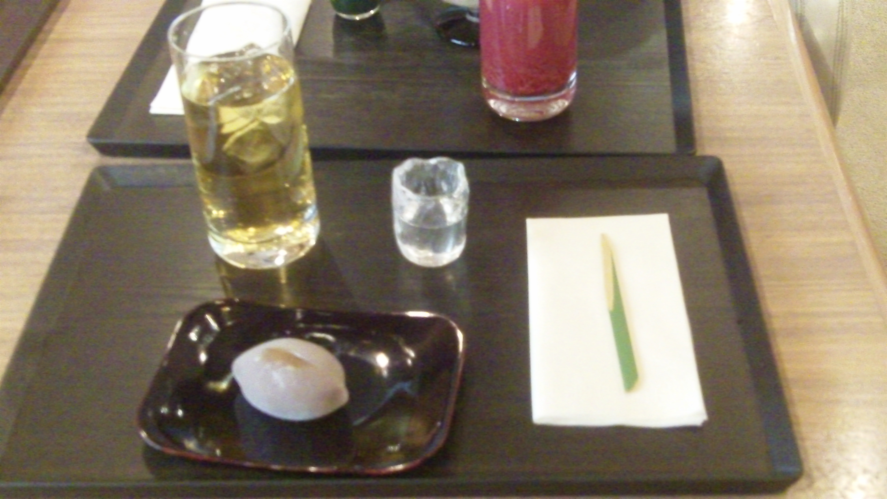 C'est plutot sympa donc, en guise de cuiller on a un morceau de bambou taillé. Mais le verre n'est pas un glacon contrairement à ce qu'on voit sur les photos :)