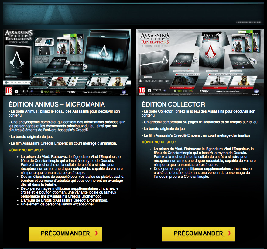 En allant sur le shop d'Ubisoft, j'ai remarqué que dans les éditions collector et animus, il y avait un court métrage d'animation inclus se nommant Assassin's Creed Embers :