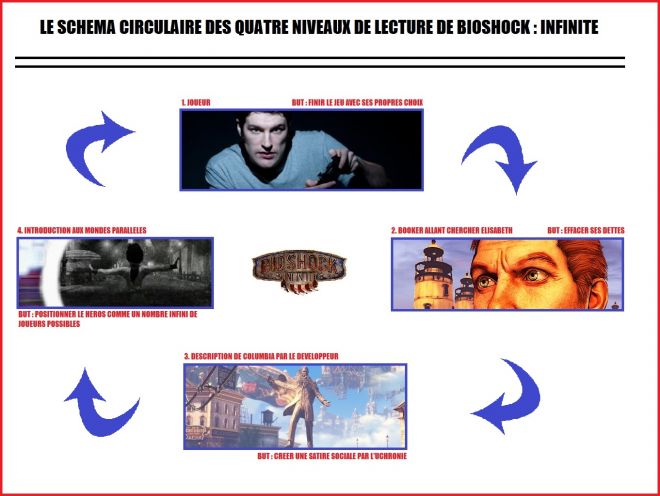 J'ai fini Bioshock Infinite, enfin. Il y a eu des hauts et des bas, mais dans tous les cas je pense que c'est l'une des quelques oeuvres marquantes de ce début des années 2010. Je ne sais pas si c'est une critique de l'industrie vidéoludique, ou une déclaration d'amour à ce média qui permet une infinité d'histoires possibles, mais dans tous les cas, c'est un joli pied-de-nez aux clichés vidéoludiques. Comme son aîné en fait. Son changement brutal de sujet en milieu de parcours m'aura énormément surpris, et si j'étais assez réticent vis à vis de ce thème des univers parallèles, c'est finalement traité de façon à ce qu'il y ait quelque chose à raconter.